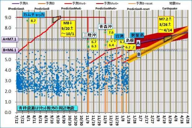 特異点は、2026.3/26±5d M7.2± 最大延長A=B 4/14
