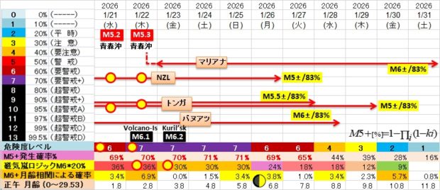 ◆危険重複度グラフ/国内M5+発生確率[1/23 08:30更新]