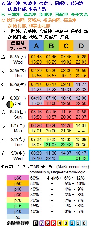 磁気嵐ロジックと国内M6+の相関は「磁気嵐ロジックの実績検証について」をご覧下さい