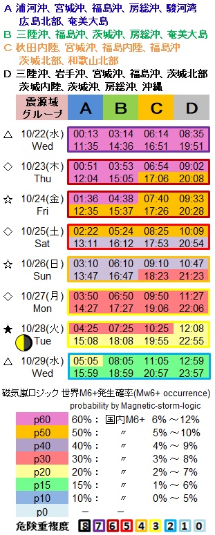 磁気嵐ロジックと国内M6+の相関は「磁気嵐ロジックの実績検証について」をご覧下さい