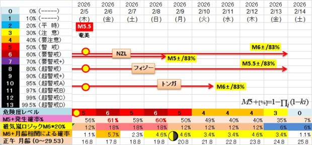 ◆危険重複度グラフ/国内M5+発生確率[2/6 09:30更新]